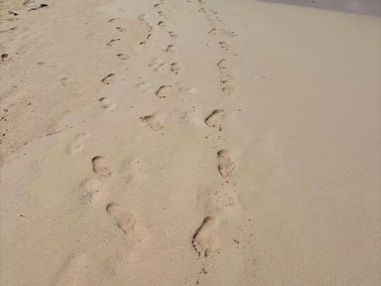 Las huellas aparecían de a dos, paralelas, como si la arena hubiera decidido guardar un secreto. Eran nuestras: las mías,