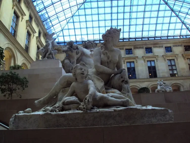 Te he visto bajo el cristal inmenso del Cour Marly, donde la luz de París acaricia las esculturas como si quisiera devolverles el aliento, a